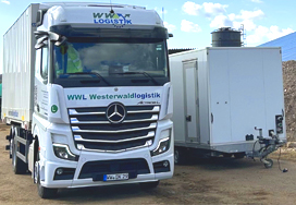 Für die Erstbefüllung eines Wämespeichers mit 2000 m³ Reinstwasser wurde von uns die Mobile Reinstwasser Anlage mit Equipment in den Schwarzwald transportiert. Dort werden mit diesem Kapazitätsausbau in Zukunft 300 Haushalte mit Strom und Fernwärme aus Biogas versorgt.Einsatz für eine Wasseraufbereitungsanlage
